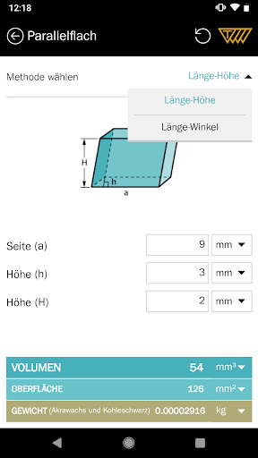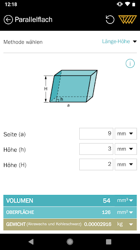 Wählen Sie eine Geometrieform; machen Sie Ihre Maßeingabe und Sie bekommen sofort ein Ergebnis für Fläche & Volumen. Bei volumetrischen Formen kann mithilfe von vielen Materialdichten das Gewicht bestimmt werden.