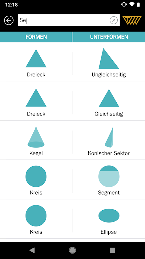 Swipen Sie durch die vielfältigen Kategorien und Formen oder wählen Sie die Form direkt über eine Sucheingabe.