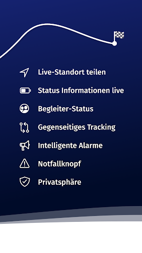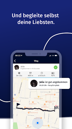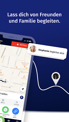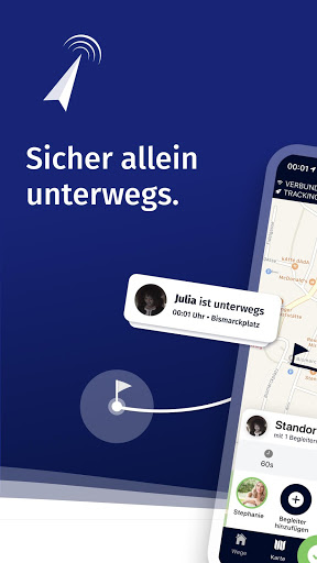 1. Start: Starte deinen Weg und wähle Freunde und Familienmitglieder als Begleiter aus. Sie werden per Push-Nachricht informiert, dass du unterwegs bist.