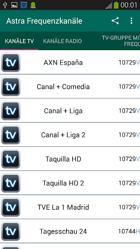• Sie können die Frequenz, die Sie suchen möchten, geben eine Liste aller TV-Kanäle mit der gleichen Frequenz.