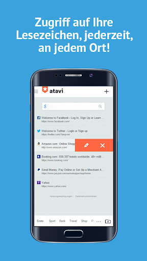 Atavi Bookmarks ist eine neue App für Mobilgeräte des kostenlosen und höchst komfortablen Dienstes, der zu jeder Zeit und an jedem Ort Ihre Web-Lesezeichen sicher speichert und synchronisiert. Es spielt keine Rolle, ob Sie Zuhause Windows, bei der Arbeit Mac OS oder oftmals zwischen Laptop, Tablet und Smartphone wechseln müssen - Sie können von jedem Ort, von jedem Gerät und von jedem BS aus mühelos auf Ihre Lesezeichen zugreifen!
