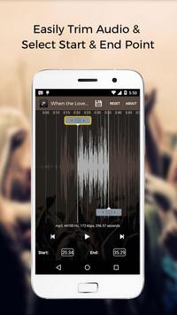Select the portion from the song then trim desired part of the song for using in Ringtone, Notification, Alarm. You can see an indicator cursor. you can cut the song at the perfect position you want. Audio MP3 Ring Cutter Merger supports cutting of MP3, AAC, WAV, M4A, AMR etc....