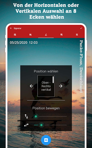 ➺ nur Anwendung im Spiel Speichern Datum und Uhrzeit, Signatur, GPS und Logo Stempel einem Foto zu geben.