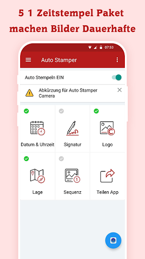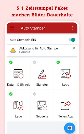 Wenn Sie also gern Foto Stempeln, dann gibt 's keine bessere Free Picture app für Sie andere als Auto Stamper. Es kann auch als eine erstaunliche Kamera Timestamp Anwendung wegen der Zielsetzung erfüllt von Stempeln Fotos mit der eingebauten Kamera ausgestattet werden.