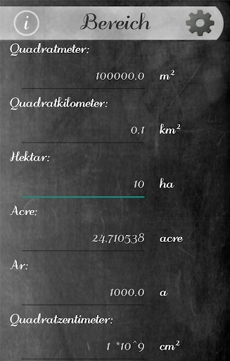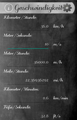 Extrem schnell, präzise und schön Konverter. Jetzt können Sie einfach und intuitiv zu konvertieren alle Einheiten am häufigsten verwendeten! Das Programm beinhaltet: