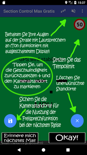 Speichern Sie IHRE Blitzer-Standorte für alltägliche Fahrten – und nutzen Sie die App dann im Freisprechbetrieb! Ihre Durchschnittsgeschwindigkeit wird zurückgesetzt, wenn Sie an den Standorten Ihrer gespeicherten Blitzer vorbeifahren.