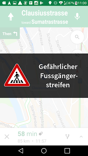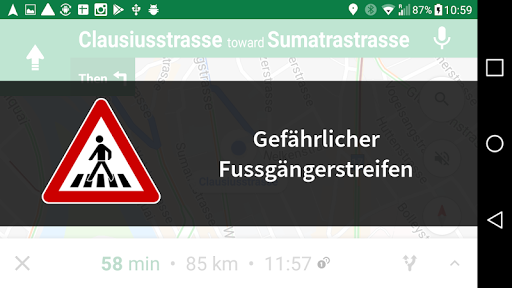 Einmal installiert, erkennt die App automatisch, wenn eine Navi-App gestartet wird und gibt Warnungen zu Gefahrenstellen beim Autofahren (Liste der kompatiblen Navi Apps, siehe unten).