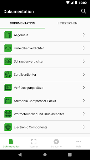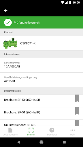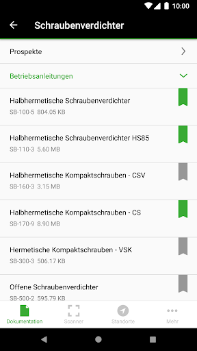 Darüber hinaus hält die BITZER SPOT App für Anwender eine ganze Reihe nützlicher Funktionen bereit. Bei Scan des QR-Codes zeigt sie automatisch die umfangreiche, nach Sachgruppen geordnete Dokumentation zu dem jeweiligen Produkt an. Nutzer können diese Informationen ihren Favoriten hinzufügen, herunterladen und per Sharing-Funktion teilen. Selbst im Offline-Modus müssen BITZER Kunden nicht auf diese Unterlagen verzichten: Dank eines intuitiv bedienbaren Filters finden sie jedes Dokument schnell und einfach.