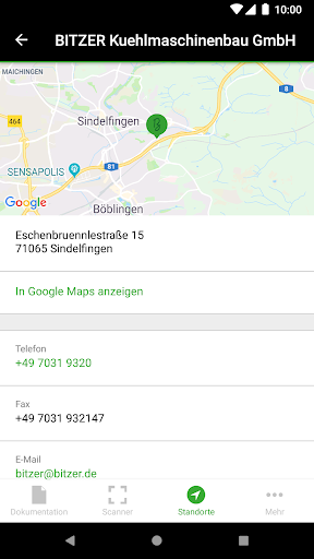 Überaus hilfreich ist zudem das komfortable Standort-Verzeichnis: Die App hält die Adresse sowie die Kontaktdaten sämtlicher BITZER und Green Point Stützpunkten sowie von allen zertifizierten Händlern und weiteren Distributoren bereit. User können direkt aus der App heraus anrufen, eine E-Mail schreiben und die Daten ihrem Adressbuch hinzufügen. Sofern der Anwender die Ortungsfunktion aktiviert hat, sortiert die App die Standort-Informationen nach Sachgruppen und nach Entfernung zum User. Über die Funktion Routenplanung zeigt sie den kürzesten Weg zum gewünschten Ziel. Alternativ können Kunden auch manuell auf die Kontaktdaten der BITZER und Green Point Standorte sowie der Partner zugreifen.