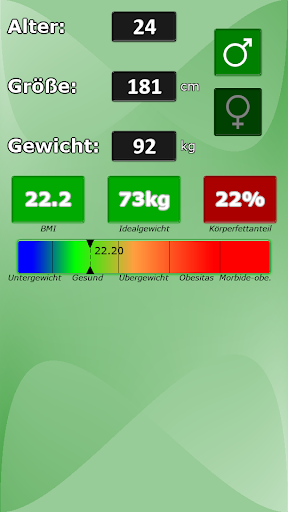 Es gibt sehr viele BMI Apps, bei dieser erhalten Sie aber eine kostenlose, automatisierte, persönliche Beratung und eine Berechnung Ihres Körperfettanteils anhand Ihres Gewichts, Alters, Geschlechts und Ihrer Größe.