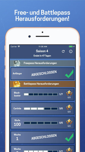 Mithilfe dieser wöchentlich aktualisierten App ist es einfach alle Herausforderungen abzuschließen und Battlestars zu bekommen. Enthalten sind Battle Pass sowie Free Pass Herausforderungen und sogar die geheimen Level 100 Herausforderungen.