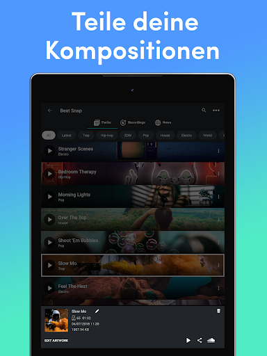 Nehmen Sie Sequenzen in wenigen Tappen auf, indem Sie mit Klängen internationaler Produzenten spielen. Visualisieren Sie Instrumente auf jedem Pad.