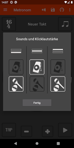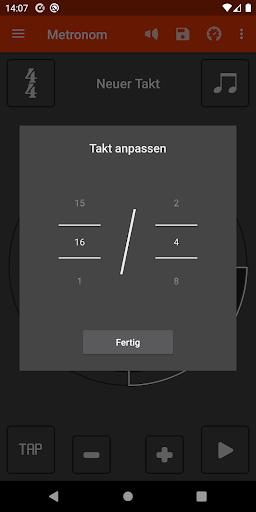 • Wähle die Taktart und Anzahl der Beats