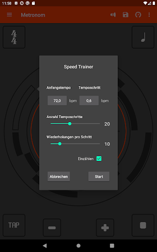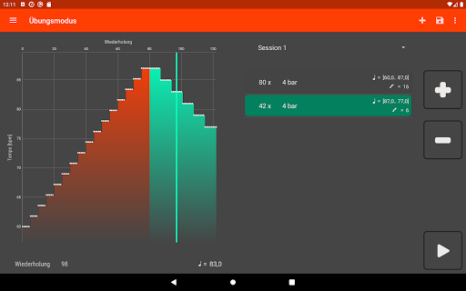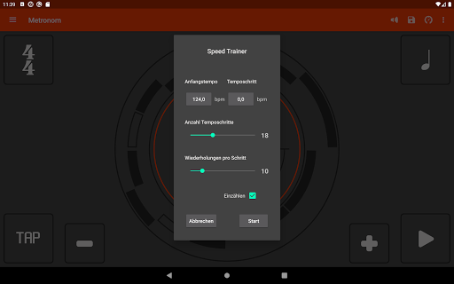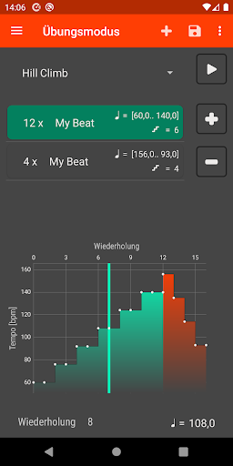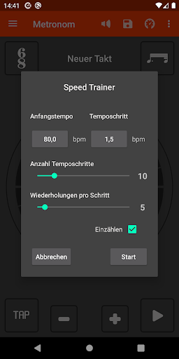 • Stelle Wiederholungen und Temposchritte ein
