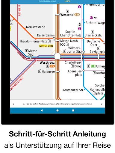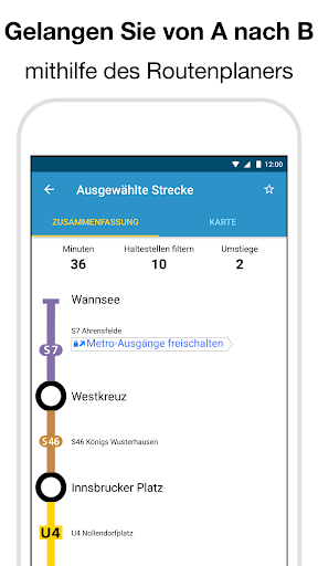 • Erhalten Sie Informationen über jede Route, und zwar wie lange es dauert, wie viele Stationen auf dem Weg liegen und wie oft Sie umsteigen müssen.
