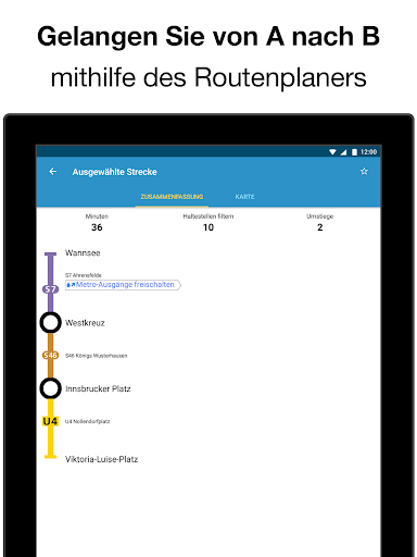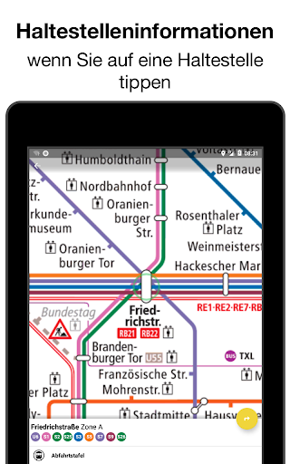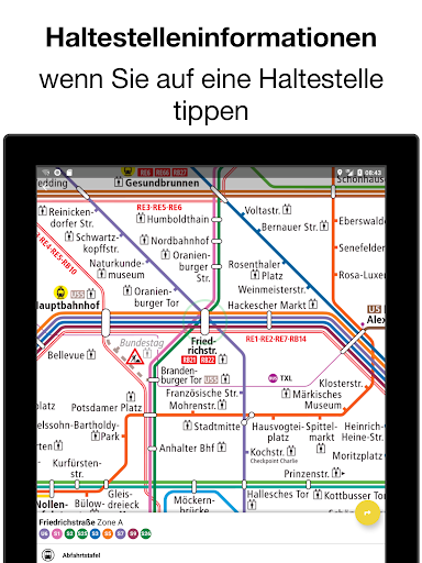 Die App Berliner Bahn verwendet die offizielle Karte der BVG (U-Bahn und S-Bahn) und bietet Ihnen außerdem einen hilfreichen Routenplaner.