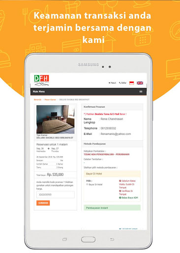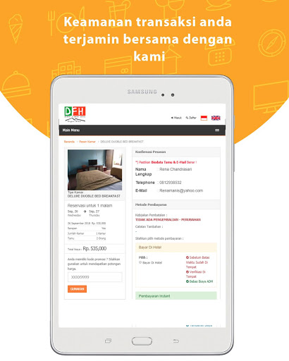 Aplikasi untuk melakukan reservasi kamar di hotel Besh Dempo Flower, hanya dari genggaman Anda, bisa pesan buat teman.
