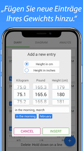 Diese App wurde erstellt, um Ihnen ein großartiges Tagebuch für Ihr Körpergewicht bereitzustellen, und misst nicht Ihr Körpergewicht. Alle Ergebniswerte werden zufällig generiert!