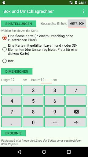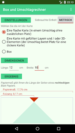 Berechnen Sie Papiergröße und Falzung für nicht standardmäßige Umschläge und Boxen.