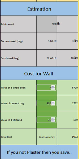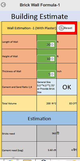 This app provide you a good idea or estimation about your building. Anyone who need to make a wall or small building. then this app help you to know your costing and materials accurately.