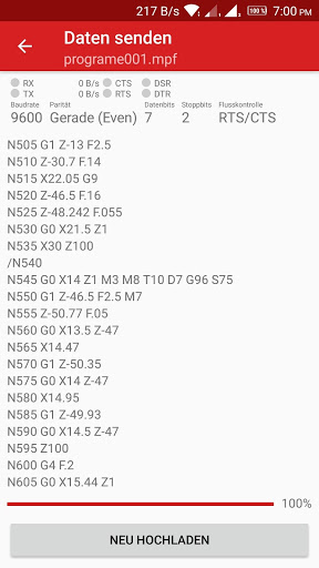 Ermöglicht den Datentransfer zwischen der CNC-Maschinensteuerung und Ihrem Android-Gerät über die serielle Leitung.