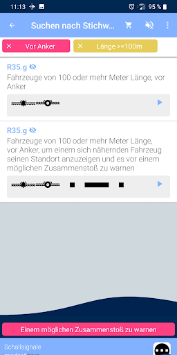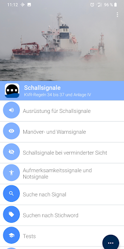Mit dieser App können Sie die ColRegs-Regeln 34 bis 37 und Anhang IV erlernen.