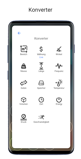 • Einheitenumrechner: Fläche, Entfernung, Länge, Winkel, Masse, Geschwindigkeit, Frequenz, Daten, Speicher, Temperatur, Volumen, Zeit, Leistung und Druck