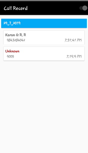Records incoming/outgoing calls which might be single or conference calls. Stores all recordings in internal storage in a folder “MyRecords” which further has folders according to the dates. Displays the dates and call recording logs under each date.Displays the contact names as saved by user in phone contacts. On clicking the particular contact ,user has option to chose which media player to play it on. Has a switch to turn the recorder on/off. Runtime permissions implemented.