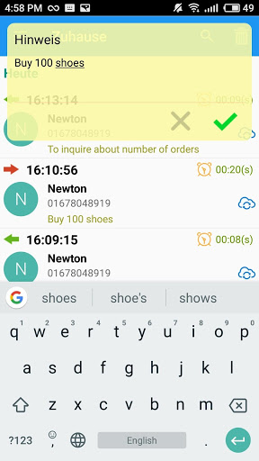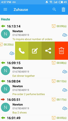 - Notiz des letzten Anrufs anzeigen, wenn ein Anruf eingehend oder ausgehend ist. Erinnern Sie den letzten Inhalt der Anrufkonversation.