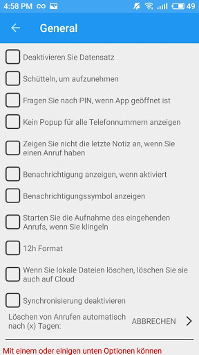- Recording Filter Option ermöglicht es Ihnen, alle Anrufe, Kontakte oder nur unbekannte Nummern aufzuzeichnen