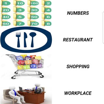 3. This app has daily used words, colors, numbers, shopping, travel, workplace, days.
