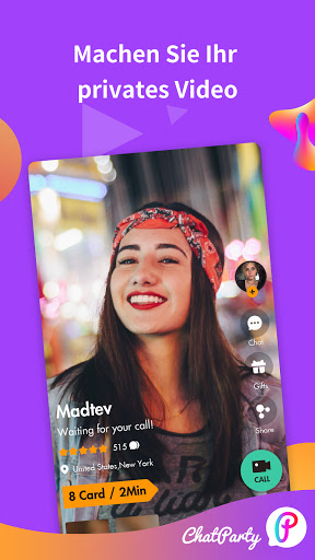 In Chatparty können Sie durch Liebesgespräche und Live-Videoanrufe neue Freunde und Ausländer auf der ganzen Welt kennenlernen. Sie können auf das Foto eines Freundes klicken, um ein soziales Date mit dem neuen Freund zu beginnen. Sie können je nach Standort einen neuen Freund auswählen. Sie können sich auch mit Freunden treffen oder ein Chat-Spiel spielen, indem Sie die Geschlechter auswählen. So viele Möglichkeiten, neue Freunde nur über Chatrooms und Chatlines zu treffen, dass Sie nicht mehr mit Freunden abhängen müssen. Was für eine fantastische Dating- und Chat-App.