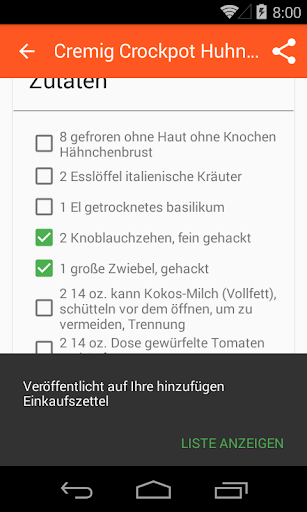 ✔ Zutaten hinzufügen in die Einkaufsliste