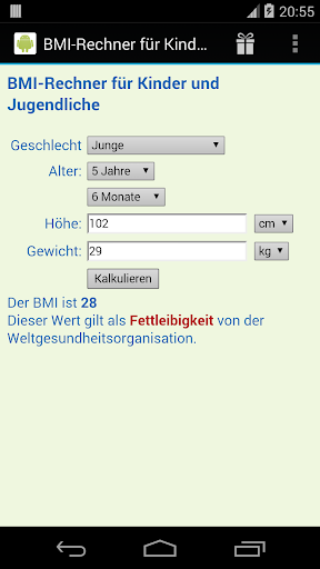 Diesem einfachen Body Mass Index (BMI) Rechner können Sie herausfinden, ob Ihr Kind ist an einer geeigneten Gewicht für seine Größe.