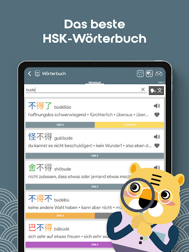 ● Über 5000 (HSK v2.0) / 11000 (HSK v3.0) Wörter. Neben dem neuen HSK v3.0 Wortschatz wird Dir der offizielle HSK v2.0 Wortschatz weiterhin zur Verfügung stehen.