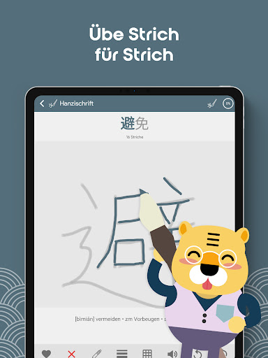 ● Du wirst schreiben lernen: Ein fortgeschrittenes Schreibsystem mit automatischer Korrektur wird Dir erlauben, jegliches chinesische Schriftzeichen Strich für Strich schreiben zu lernen.