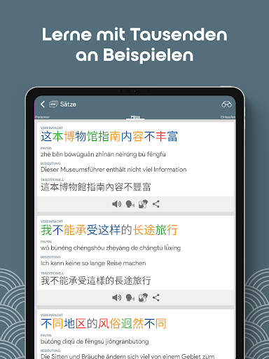 ● Für jedes erlernte Wort hast Du Beispielsätze.