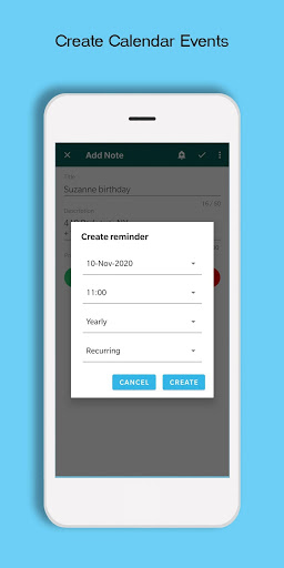 - Konvertieren Sie alle Notiz in ein Kalenderereignis mit einer benutzerfreundlichen Benutzeroberfläche - vollständige Anpassung an Ereigniseigenschaften. Klicken Sie einfach auf das Bell-Symbol