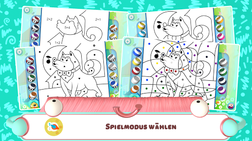 Den Kindern im Schulalter wird der komplexere Ausmalmodus gefallen. In diesem Modus ist das Bild in eine Vielzahl von Elementen aufgeteilt. Anfangs ist es schwierig zu bestimmen, was auf dem Bild ist. Ältere Kinder können den Schwierigkeitsgrad noch erhöhen und Additions- und Subtraktionsaufgaben hinzufügen. Die Kinder lösen die Beispiele und wählen die richtigen Antworten, um das Bild auszumalen. Dabei üben sie das schnelle Kopfrechnen.