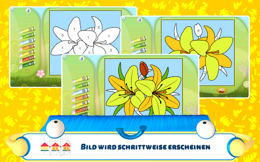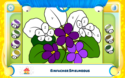 Wer gerade das Alphabet lernt, kann die Farben nach Buchstaben auswählen. Das Malen nach Zahlen bereitet die Kinder auf die Grundschule vor.