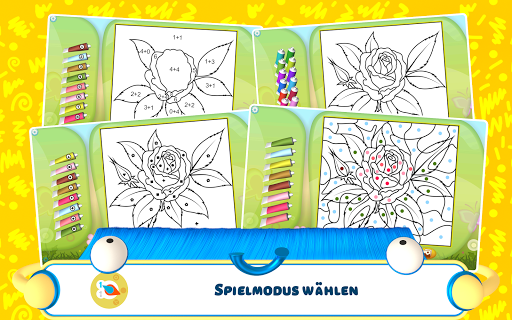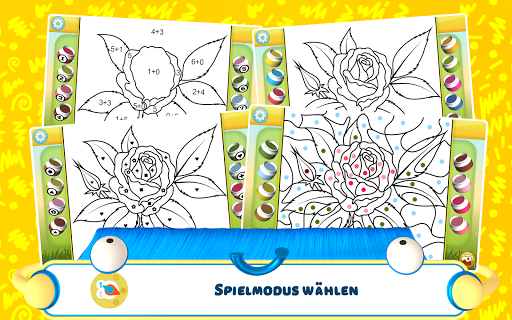 Den Kindern im Schulalter wird der komplexere Ausmalmodus gefallen. In diesem Modus ist das Bild in eine Vielzahl von Elementen aufgeteilt. Anfangs ist es schwierig zu bestimmen, was auf dem Bild ist. Ältere Kinder können den Schwierigkeitsgrad noch erhöhen und Additions- und Subtraktionsaufgaben hinzufügen. Die Kinder lösen die Beispiele und wählen die richtigen Antworten, um das Bild auszumalen. Dabei üben sie das schnelle Kopfrechnen.
