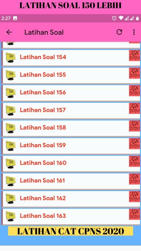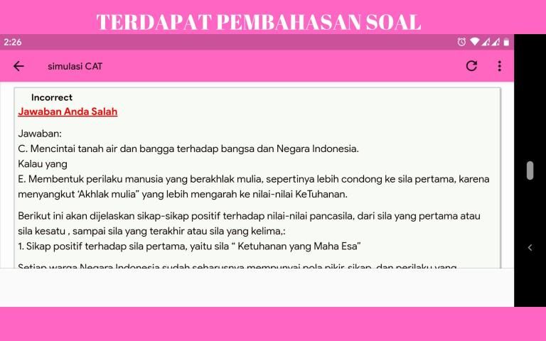 C.A.T CPNS is an abbreviation of Computer Assisted Test, which is a test to recruit CPNS conducted online by using a computer. So the exam no longer requires 2B pencils and exam boards as in the LJK system, but using a computer, this application aims to assist you in learning and understanding CPNS questions and its work procedures.