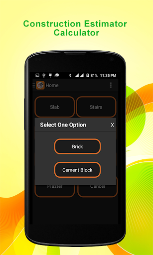 Now construction estimator is an android base application which will calculate your project cost in an accurate way. It will calculate your cost for two type of building, one is for large building and one for small house etc. Main feature are
