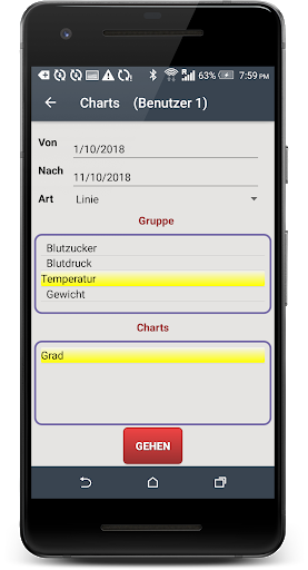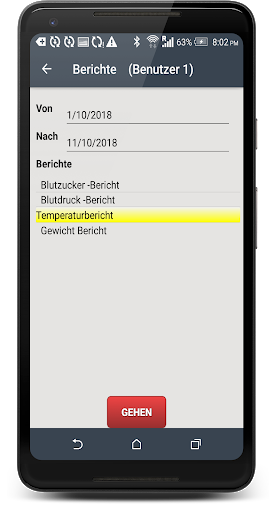 Health-Anwendungen Schnittstelle ist einfach mit grafischer Darstellung der Daten mehrere Diagramme Typen und Anwendungen mehrere Berichte erstellen mit zu verwenden; Sie können Berichte exportieren, um sie per E-Mail-Datei oder zu senden.