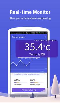 Cooler Master is a CPU temperature detection app. It controls the operations of apps that heat up the CPU, to reduce CPU utilization and cool down your device.