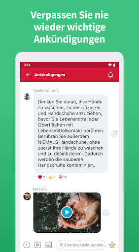 • Senden Sie Mitarbeitern Top-Down-Ankündigungen in einer vertrauten, Chat-ähnlichen Benutzeroberfläche