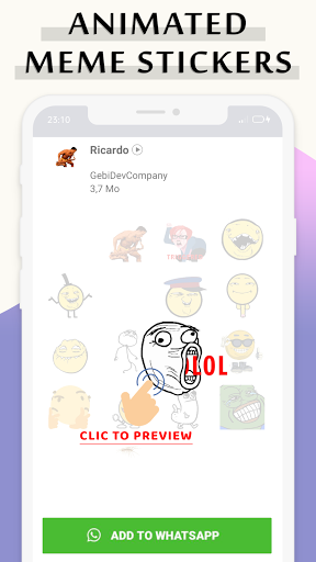 Animierte Memes Aufkleber für WhatsApp präsentiert Sie mit den animierten lustigen Aufklebern Apps.Sie können Tonnen von animierten Aufklebern für WhatsApp finden.