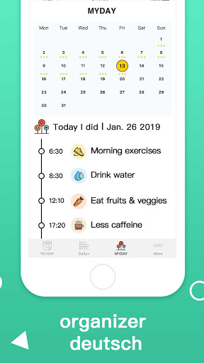 * Die einfache und schöne Oberfläche hilft Ihnen dabei, eine benutzerdefinierte Aufgabenliste zu erstellen, die auf Ihren tatsächlich vordefinierten Gewohnheiten basiert.