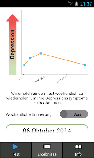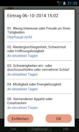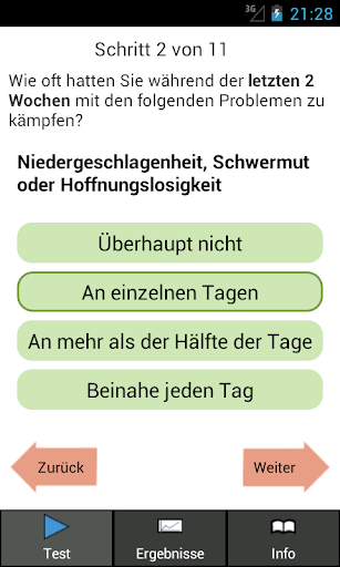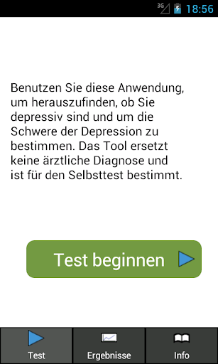 Diese Anwendung erlaubt es dem Anwender den PHQ-9 Selbsttest durchzuführen, um schnell herauszufinden, ob eine schwere Depression vorliegt. Des Weiteren liefert der Test eine Bewertung der Schwere der Depressionssymptome. Dies beinhaltet neun leicht zu beantwortende Fragen.