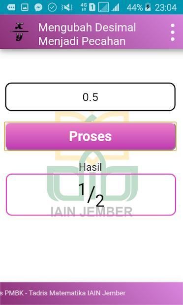 Aplikasi ini bertujuan untuk menghitung desimal menjadi pecahan dengan mudah.